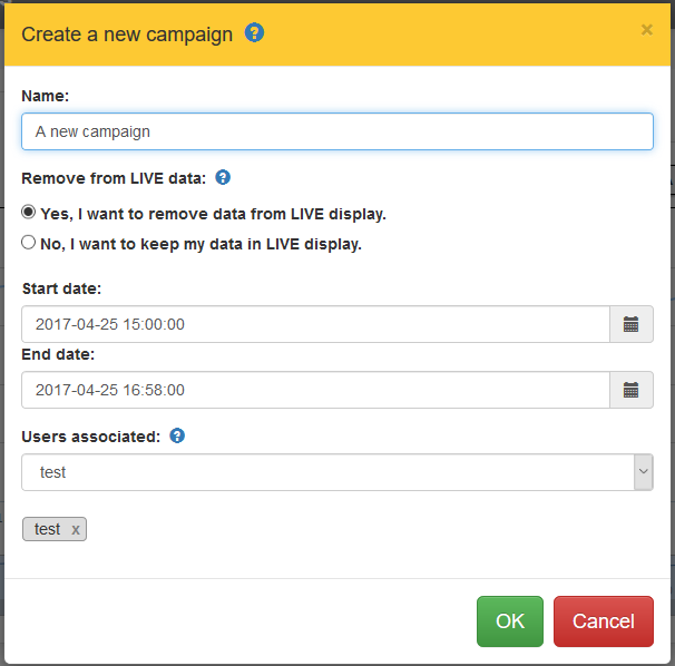 On this pop-up you can select users to associate to this campaign. This functions will allow specific users to consult data from this campaign.