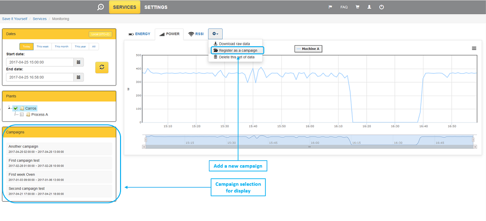 A campaign saves all your configuration and data. It gives the exact same amount of information, and you will be able to use all other services with LIVE data and CAMPAIGNS data.