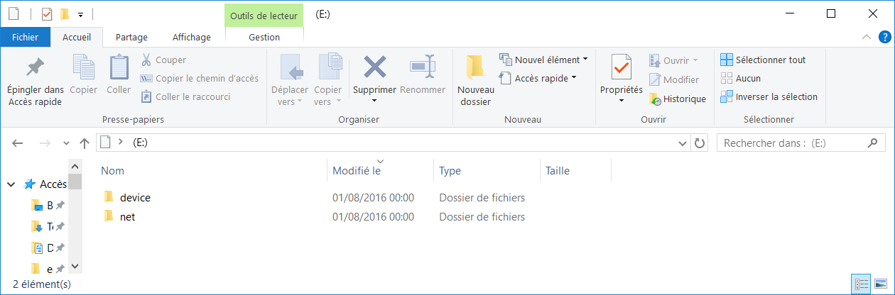 5. You should have two folders at the root of the SD Card with "device" folder and "net" folder