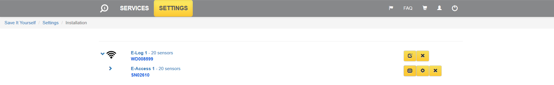 1. Start by going on Settings > Installation and expand the E-Log and the E-Access you want to update.