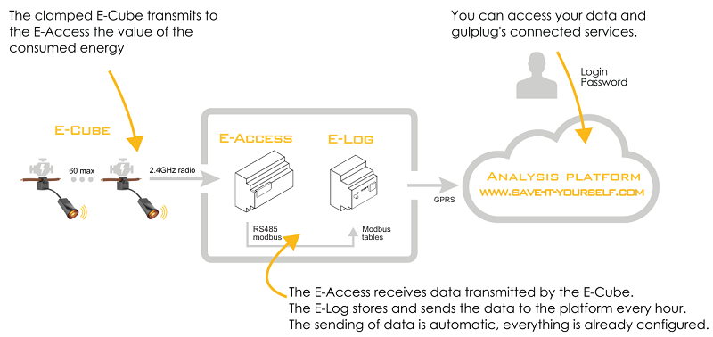 When E-Log is summoned to send data (with an automatic acquisition every hour, or with a manual push on INSTALL button):
